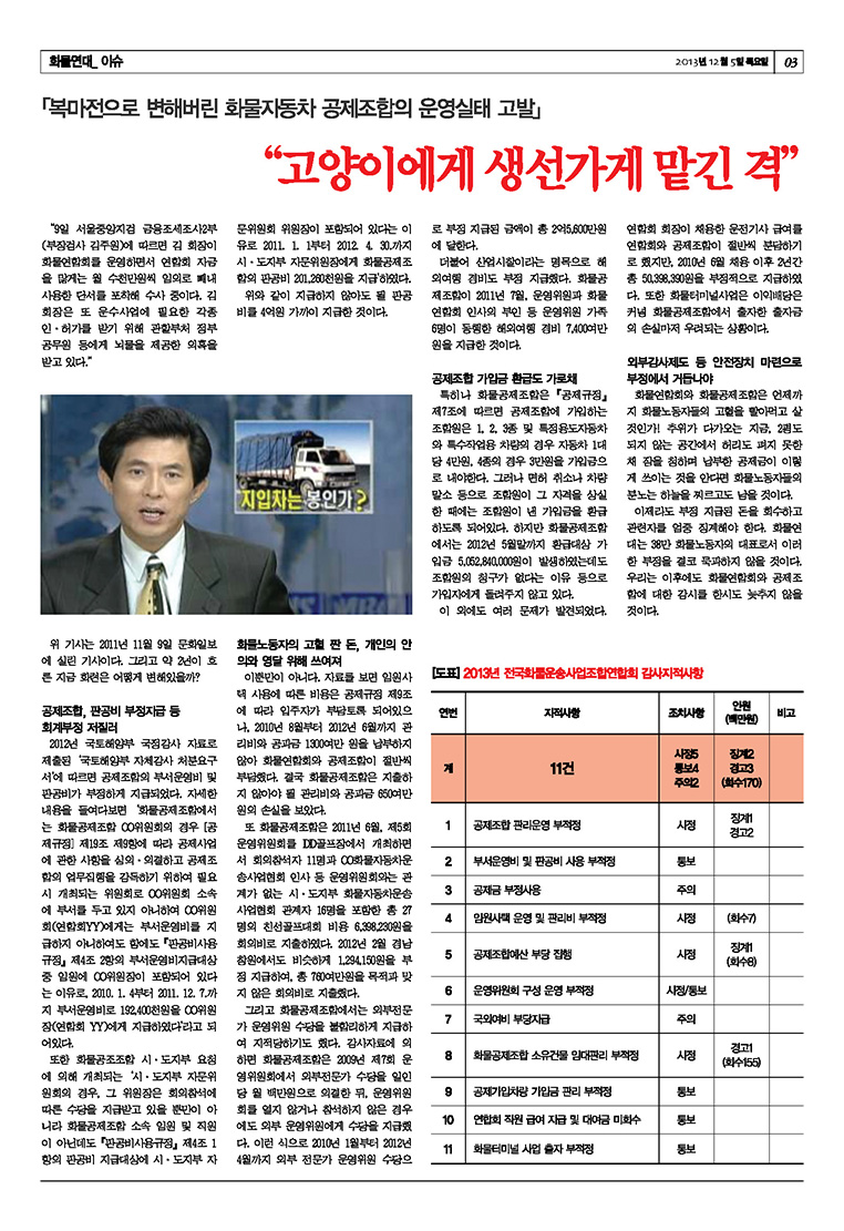 ▲복마전으로 변해버린 화물자동차 공제조합의 운영실태 고발