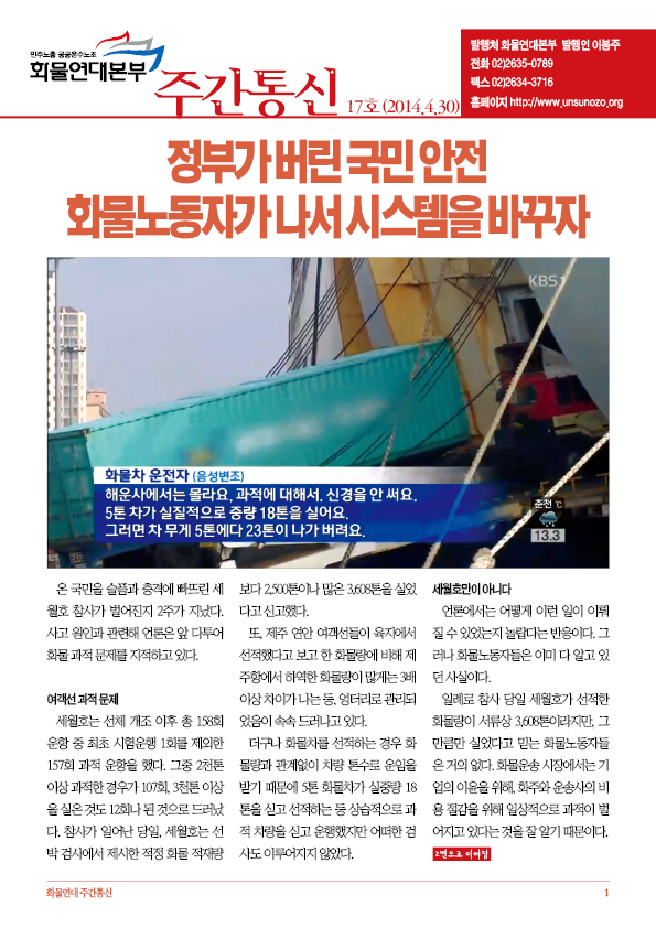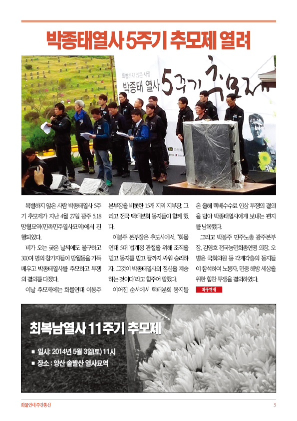 - 이전글5월 10일 진기승 동지 쾌유 기원 및 노동탄압분쇄 총력투쟁 결의대회 조직 건 14.05.07