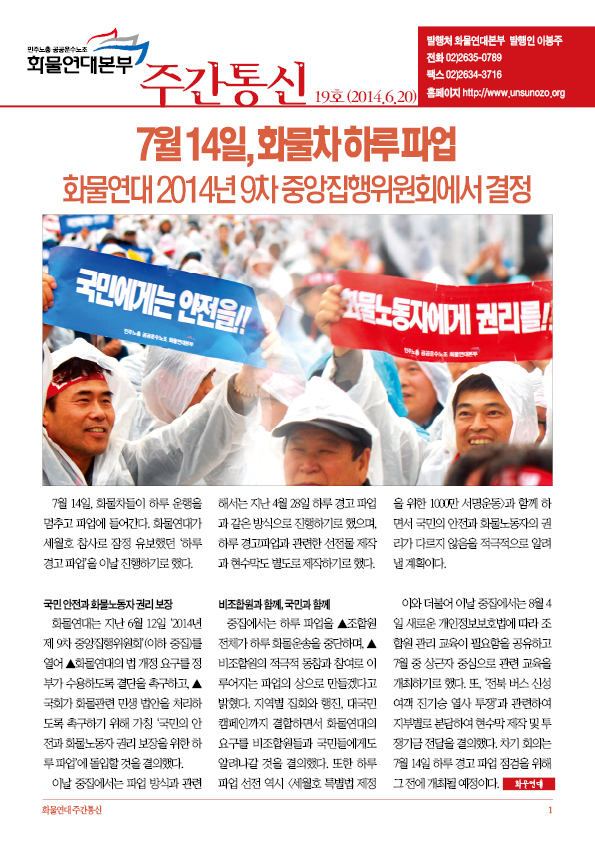 - 이전글화물연대 주간통신 20호가 나왔습니다 14.07.04