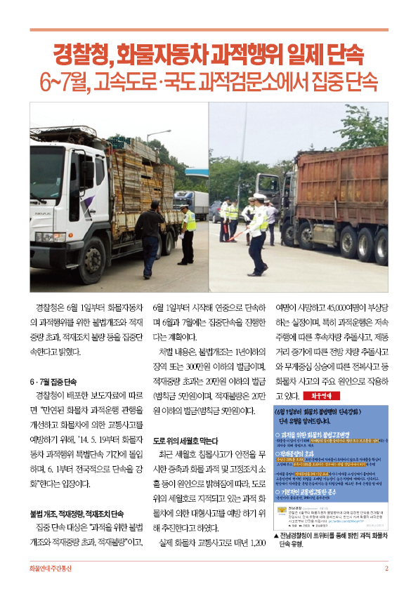 : 6~7월, 고속도로ㆍ국도 과적검문소에서 집중 단속