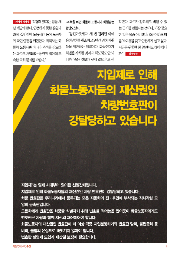 화물연대 이봉주 본부장 <경향신문> 인터뷰