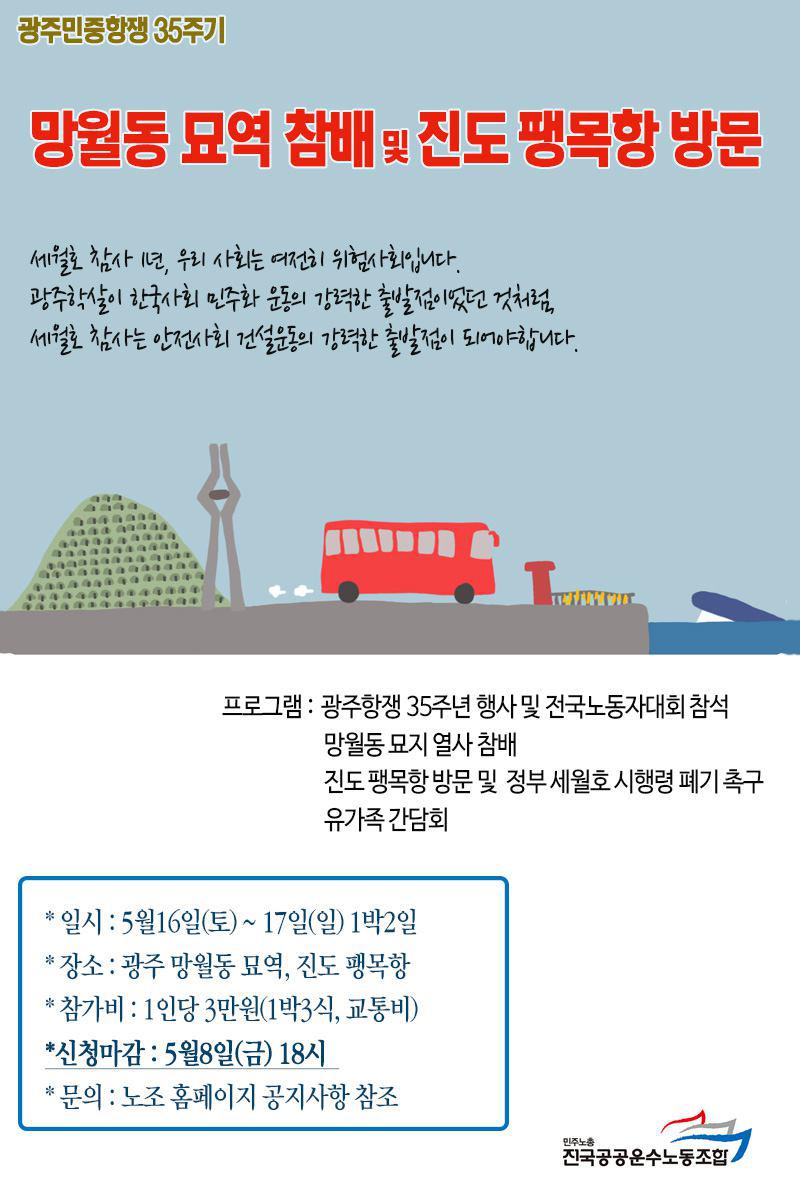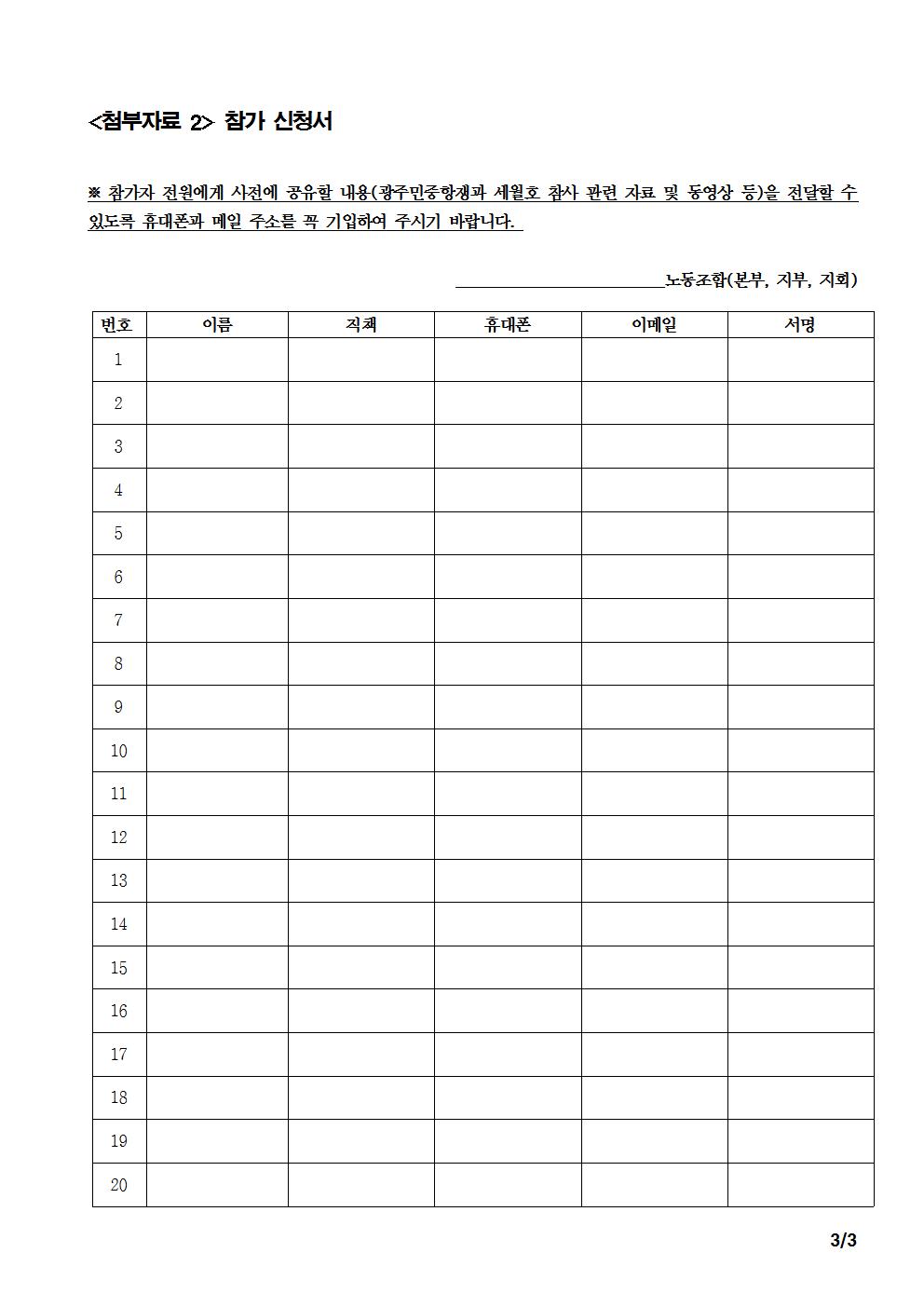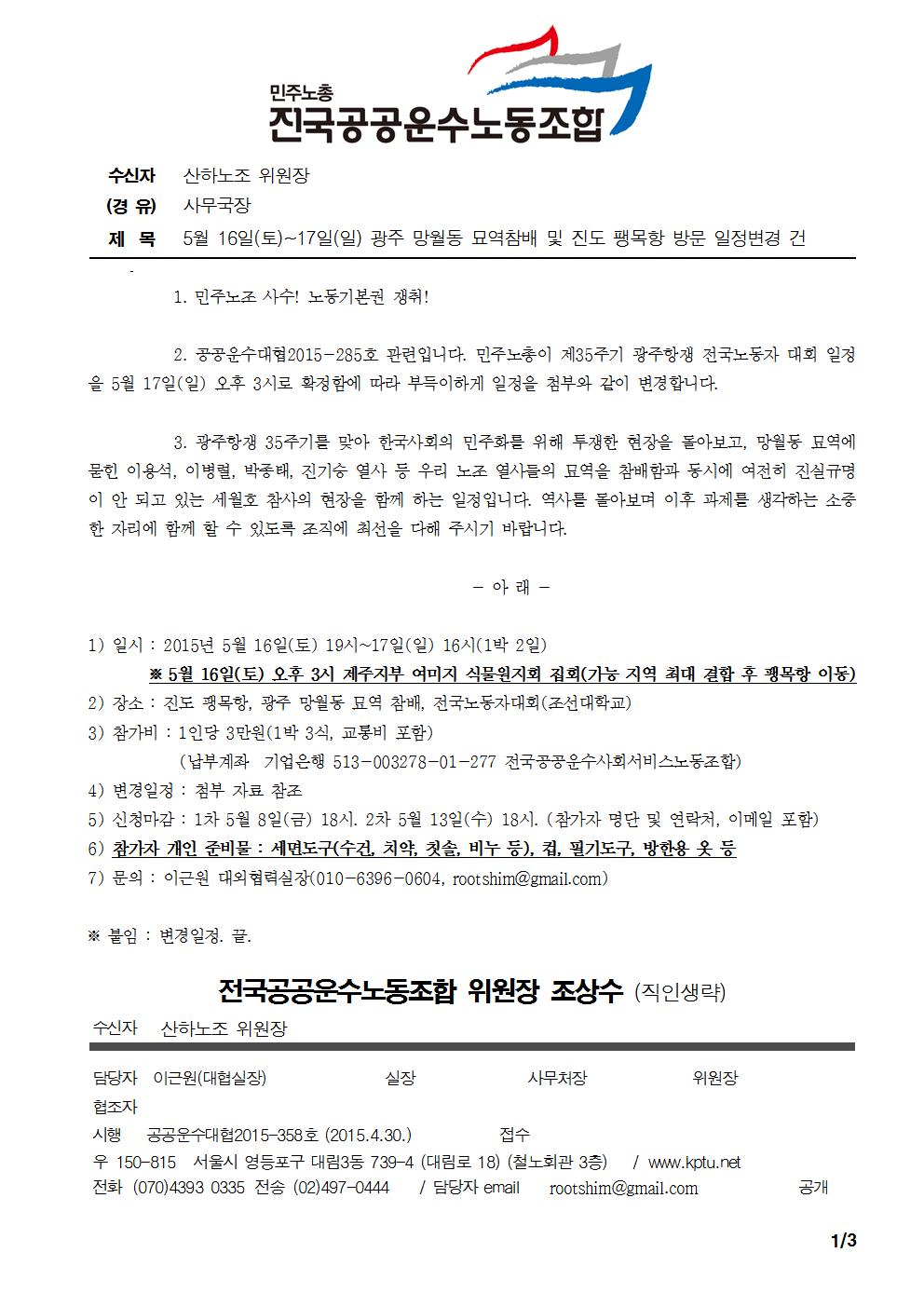 안전과 생명 5월 공동행동 페이지 정보 작성자 화물연대본부 댓글 0건 조회 12,879회 작성일 15-05-07 17:29 목록 본문 이전글[채용공고]화물연대 서울경기지부에서 함께 일할 동지를 찾습니다 15.05.11 다음글2015년 노동절! 서울시청 15시 15.04.28 댓글 0 댓글목록 등록된 댓글이 없습니다.
