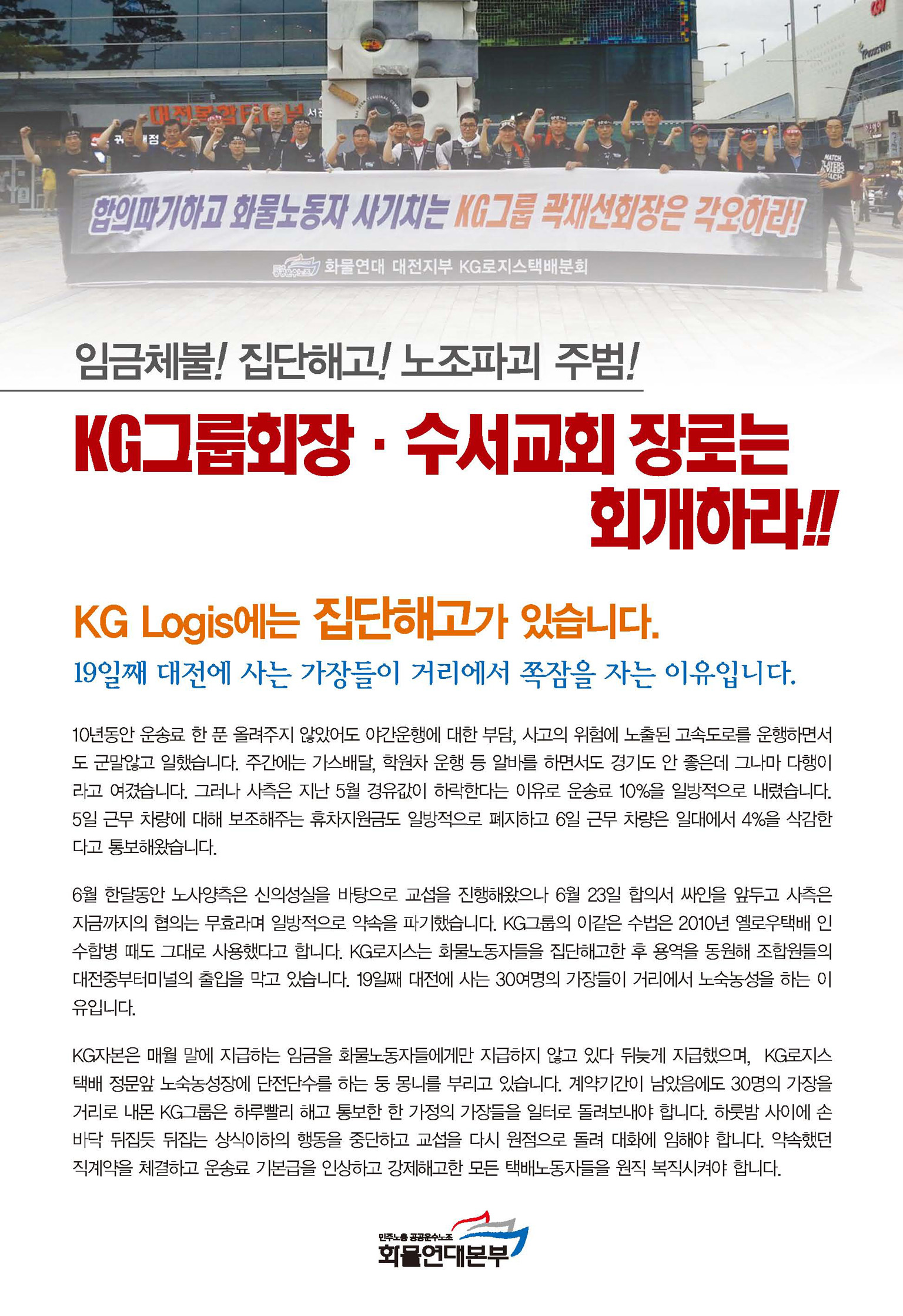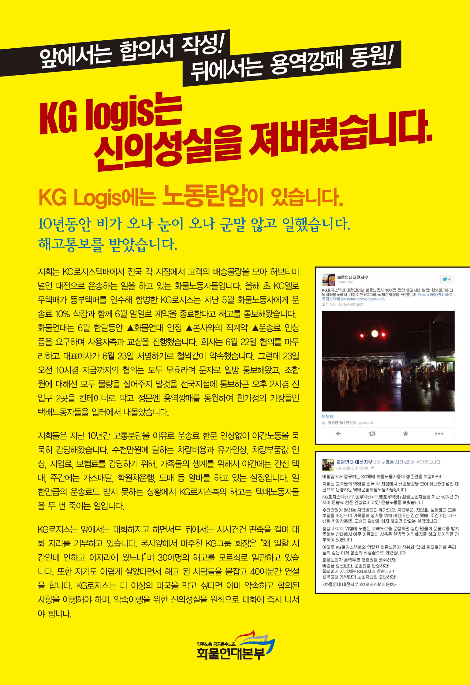 KG로지스택배 화물노동자 대량해고 관련 선전물입니다. 페이지 정보 작성자 화물연대본부 댓글 0건 조회 13,728회 작성일 15-07-10 15:08 목록 본문 . 이전글[화물복지재단] 하반기 장학사업 및 문화누리사업 15.07.30 다음글cj대한통운택배 시민선전물입니다. 15.07.09 댓글 0 댓글목록 등록된 댓글이 없습니다.