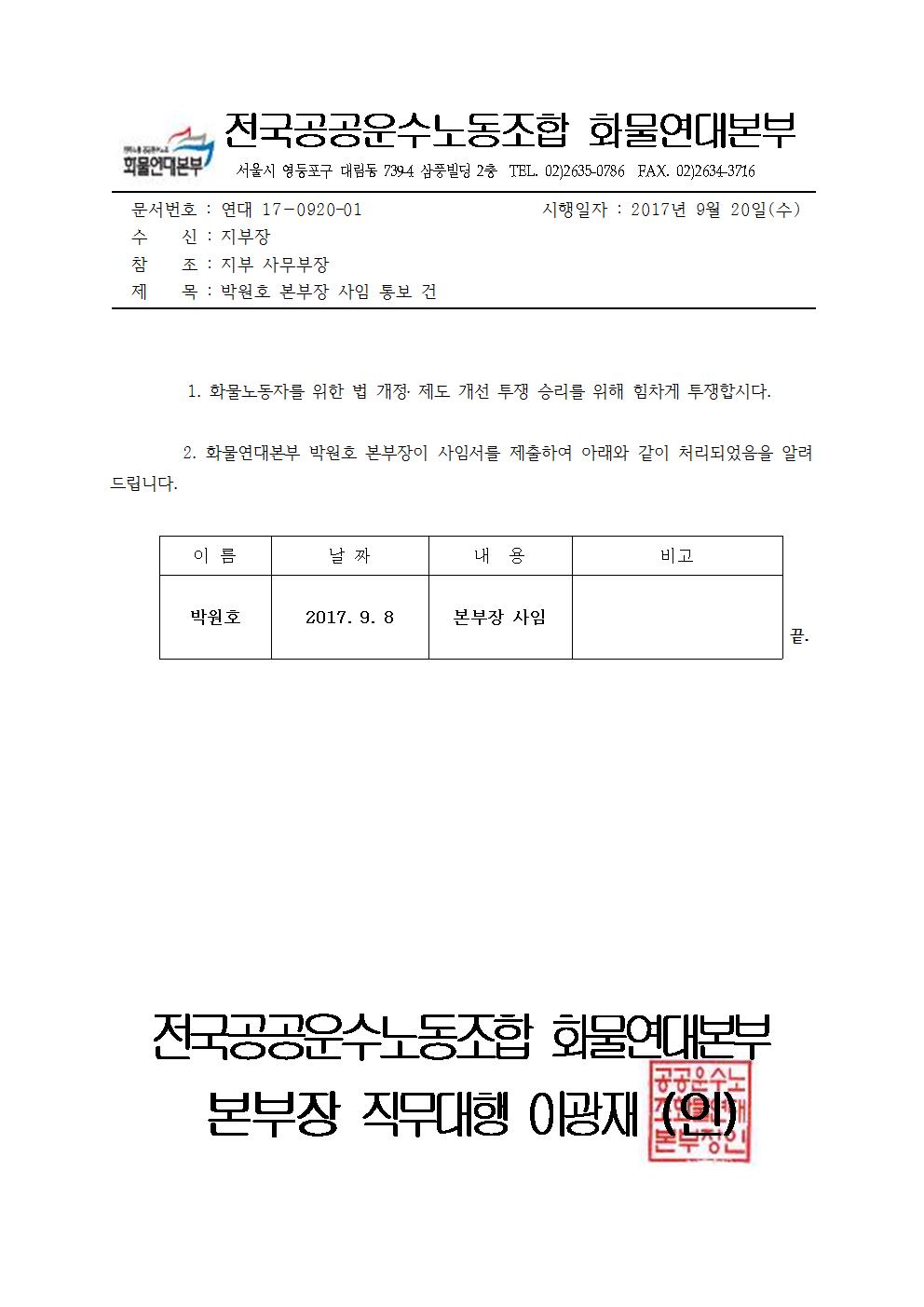[공지] 박원호 본부장 사임 건 페이지 정보 작성자 화물연대본부 댓글 0건 조회 16,565회 작성일 17-09-20 15:51 목록 본문 ..... 이전글2017년 3차 임시대의원대회 소집 공고 17.10.13 다음글2017년 2차 임시대의원대회 소집 공고 17.08.31 댓글 0 댓글목록 등록된 댓글이 없습니다.