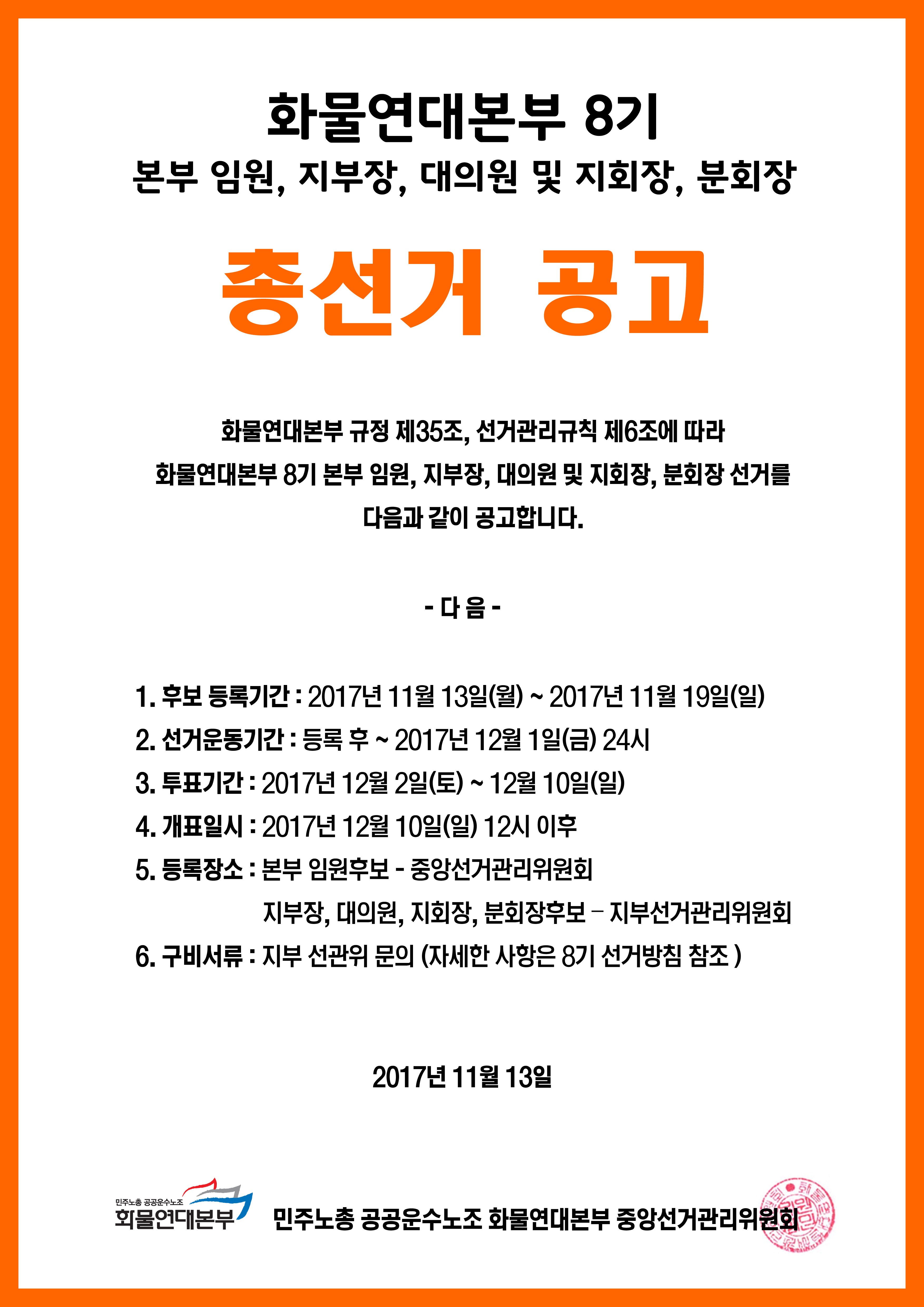 화물연대 8기 총선거 공지