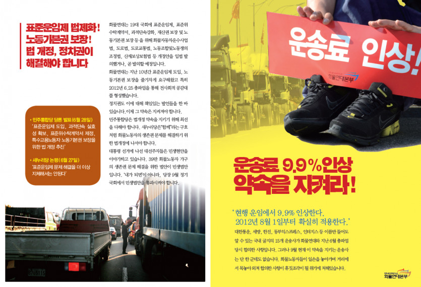 [선전물] 운송료 9.9% 인상, 약속을 지켜라! 페이지 정보 작성자 화물연대본부 댓글 0건 조회 14,265회 작성일 12-09-10 10:47 목록 본문 . 이전글복지사업단 설문조사 12.10.19 다음글[공고] 2012년 3차 중앙위원회 소집공고 12.08.30 댓글 0 댓글목록 등록된 댓글이 없습니다.
