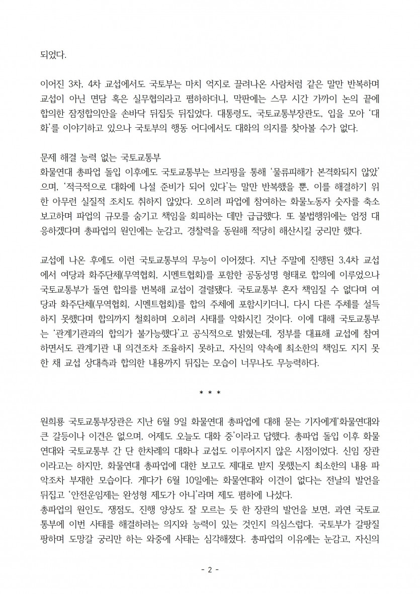 - 다음글[브리핑] 국토교통부와의 4차 교섭 결렬 22.06.13