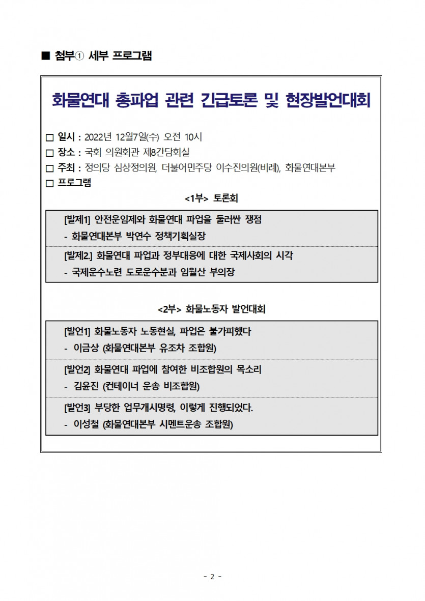 221207_후속보도자료_화물연대_총파업_긴급토론_및_발언대회 2.hwp (385.5K)