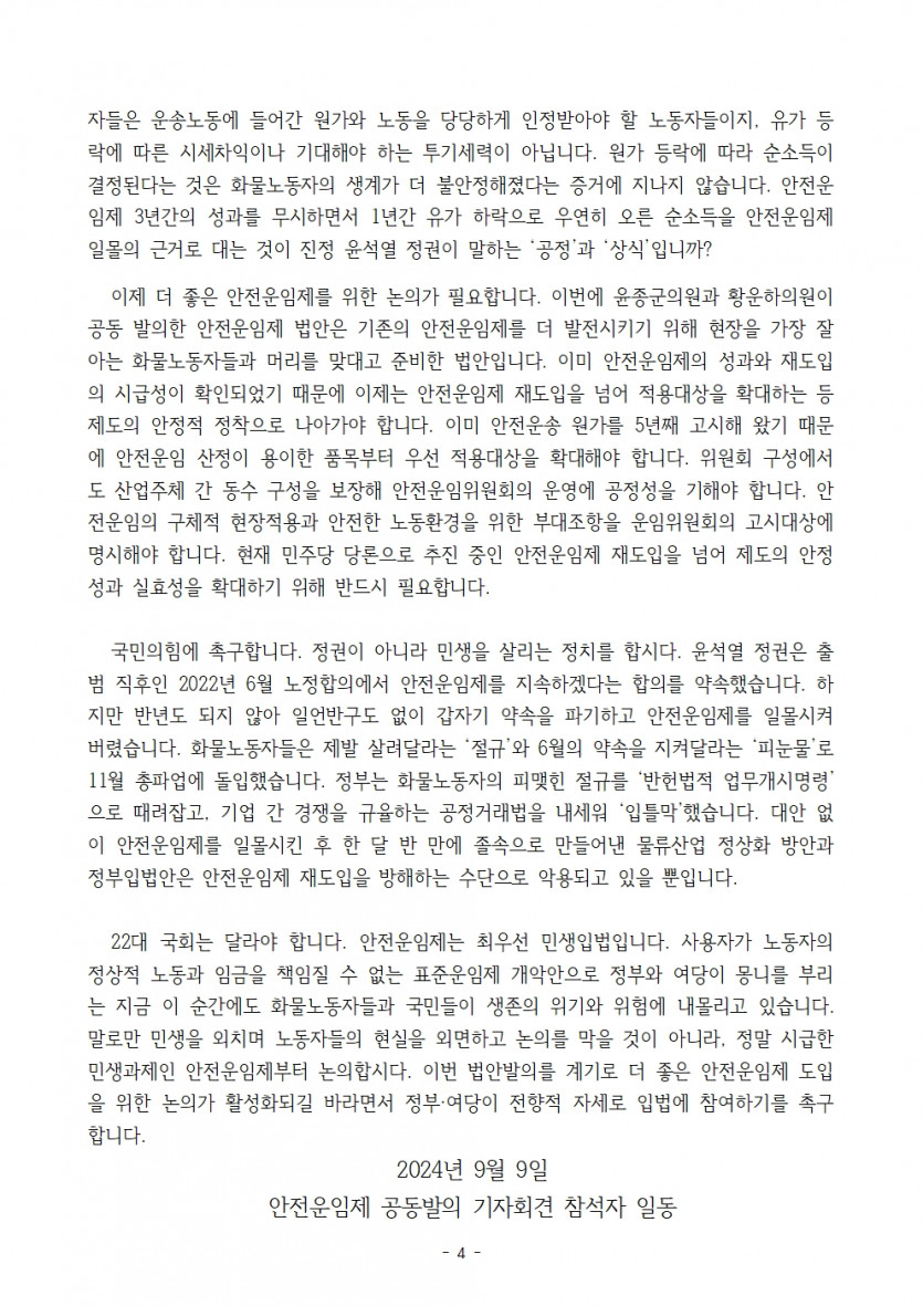 240909_보도자료_물류산업 정상화 화물노동자 생존권 국민안전 확대2.hwp (311.0K)